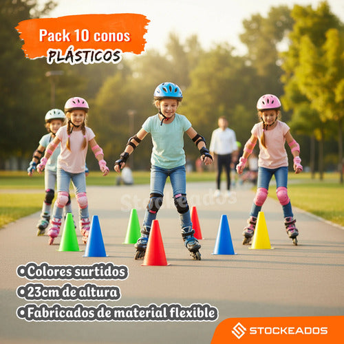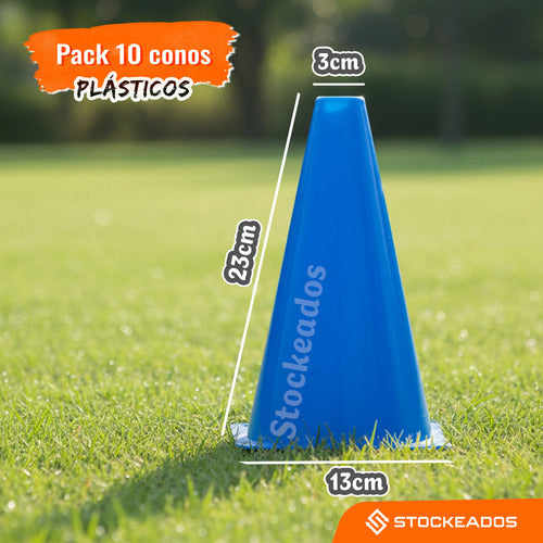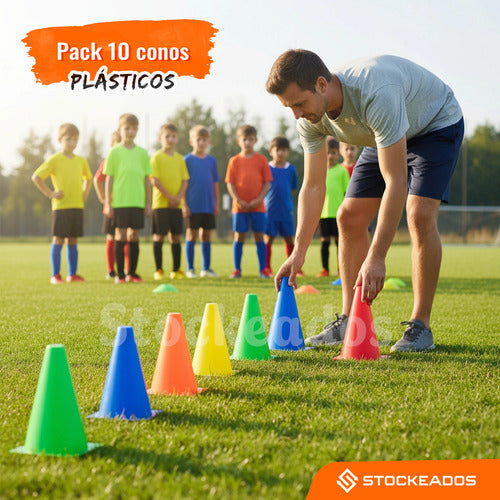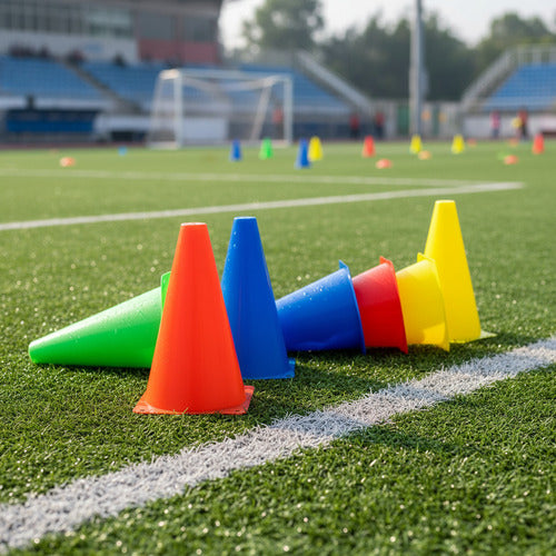 Ideal para actividades deportivas, entrenamiento físico, fútbol, educación física o circuitos de agilidad. Este pack incluye 10 conos de alta visibilidad en diferentes colores para una mejor organización y señalización durante tus prácticas.
