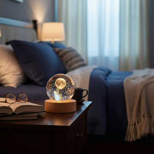 Lampara De Noche Led 3d Bola Cristal Diseños