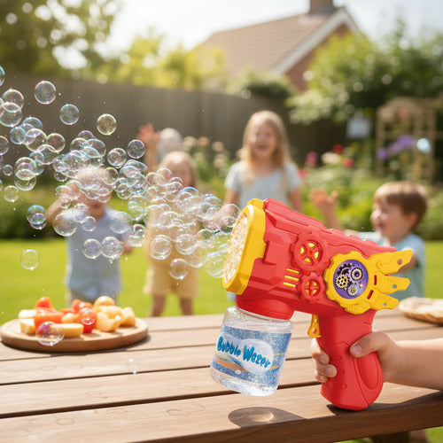 Pistola De Burbujas Color Rojo Lanza Burbujas